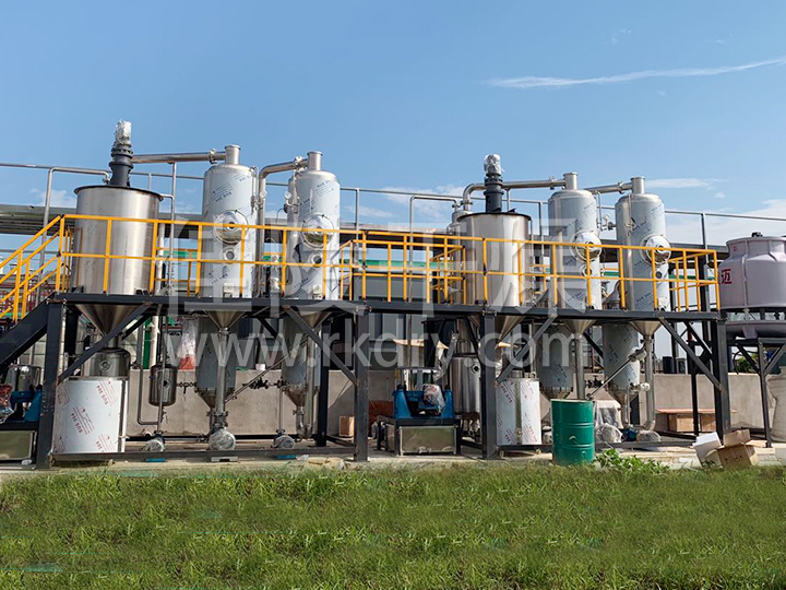 物料經分配器被均勻的分配到各蒸發(fā)器管內,物料在重力和自蒸發(fā)形式的二次蒸汽的作用下形成螺旋形膜狀自上而下流動,同時物料薄膜與列管外壁蒸汽發(fā)生熱量交換,使物料中的水份受熱蒸發(fā),穩(wěn)定的溫差和傳熱面積,形成穩(wěn)定的水份蒸發(fā)量,被蒸發(fā)的水份所形成的二次蒸汽被多次利用,大限度的利用熱能,降低蒸汽消耗,形成多次蒸發(fā)目的設計原理。